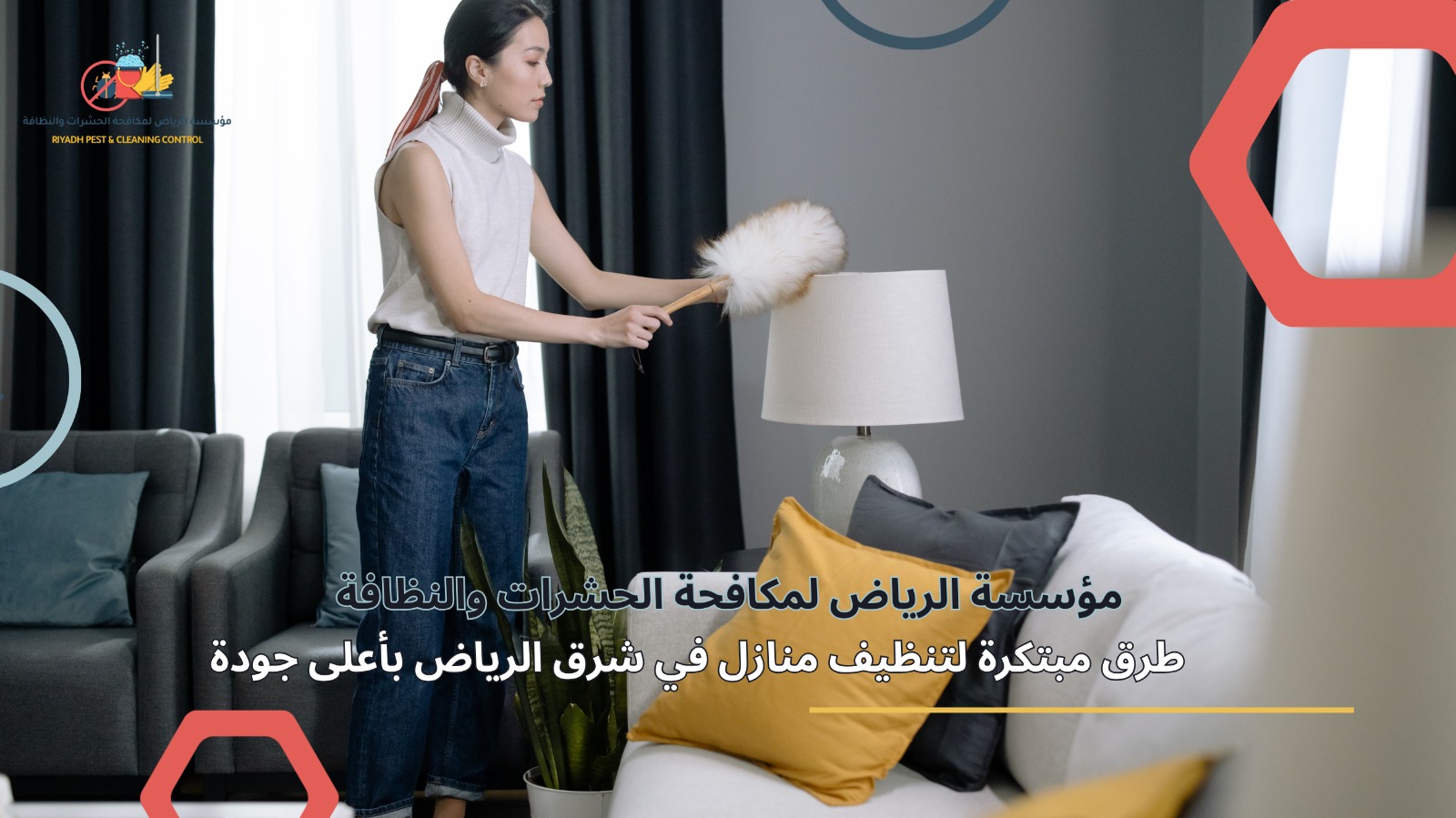خدمة تنظيف منازل في شرق الرياض مع مؤسسة الرياض تضمن العناية بالتفاصيل الدقيقة مثل تنظيف الزوايا الضيقة والصنابير والمغاسل والأسطح المعدنية والمرايا كما يتم ترتيب الغرف بعد التنظيف لتوفير جو مريح ومنظم يعزز الراحة النفسية لجميع أفراد الأسرة كما يساعد تنظيف الأثاث والكنب والسجاد على إزالة الغبار والشوائب التي يصعب تنظيفها بالطرق التقليدية ويجعل المنزل دائما نظيفا ومرتباً